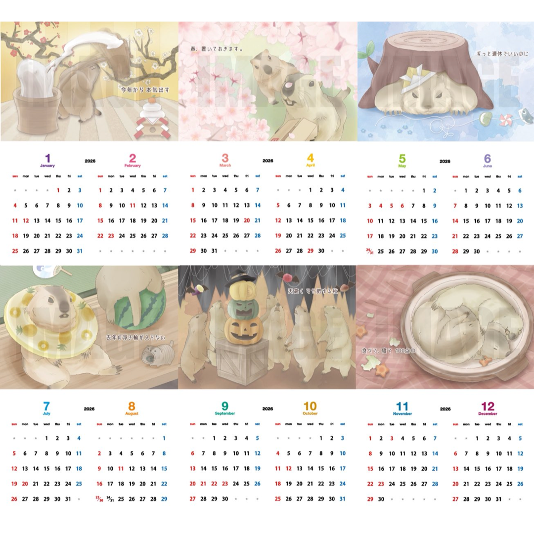 日々のストレスを癒してくれる、季節 × マーモットの 脱力系イラストカレンダー♪
