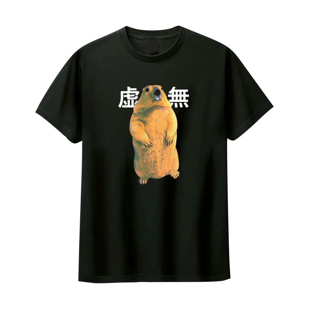ドクターマーモットさんのご家族のヒマラヤマーモット「まもち」がモデルとなった虚無マーモットTシャツです。
