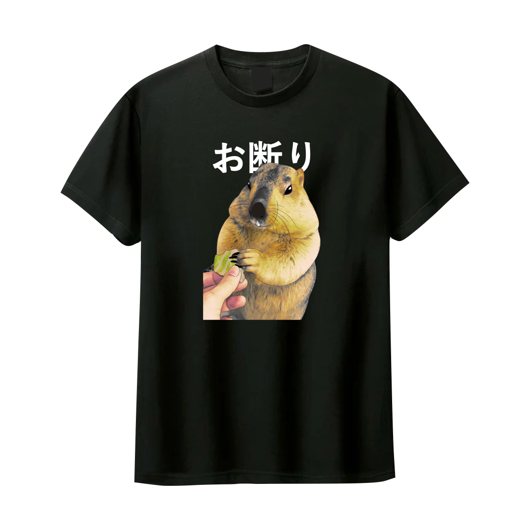 ドクターマーモットさんのご家族のヒマラヤマーモット「まもち」がそうなシーンをTシャツにしました。