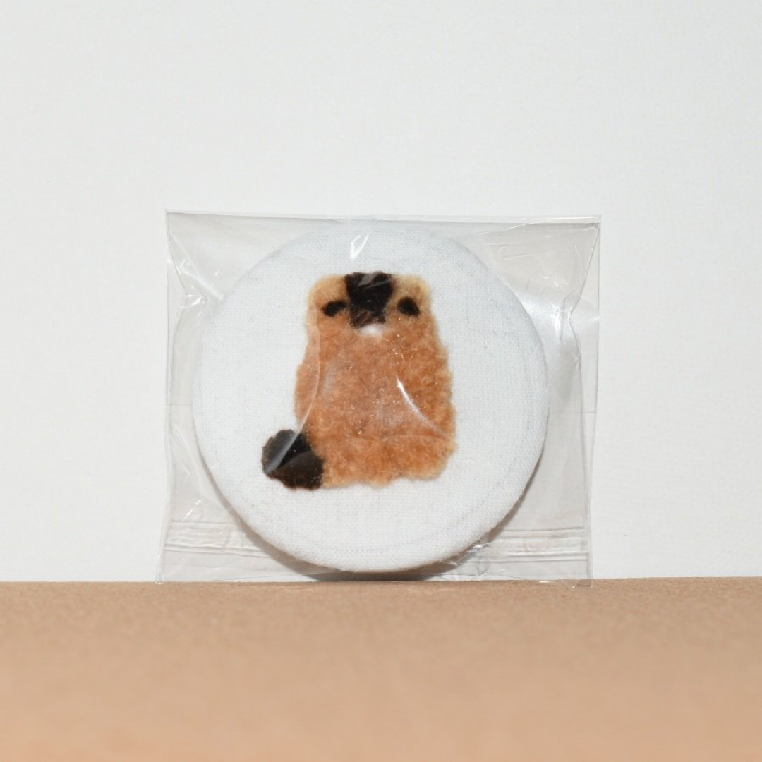 パンチニードルで作ったふわふわマーモットの缶バッジです。