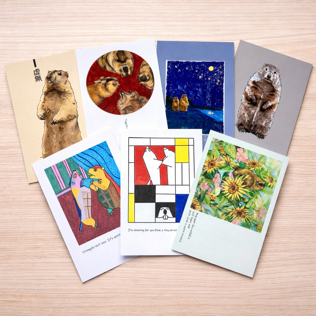 TSUBOMIさんが描く油絵マーモットのポストカード。