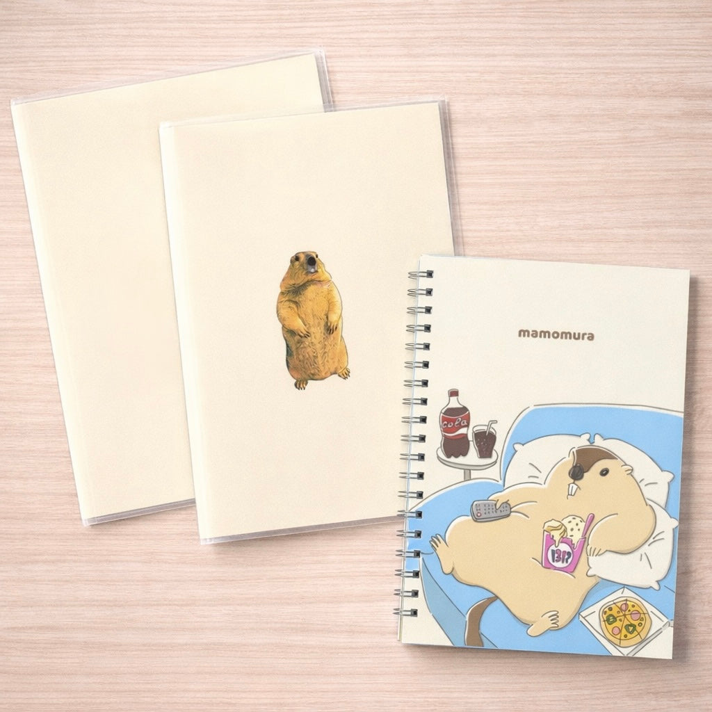 「虚無マーモットファイル」2つ、「マモチートデイノート」1冊が入った文具セット。